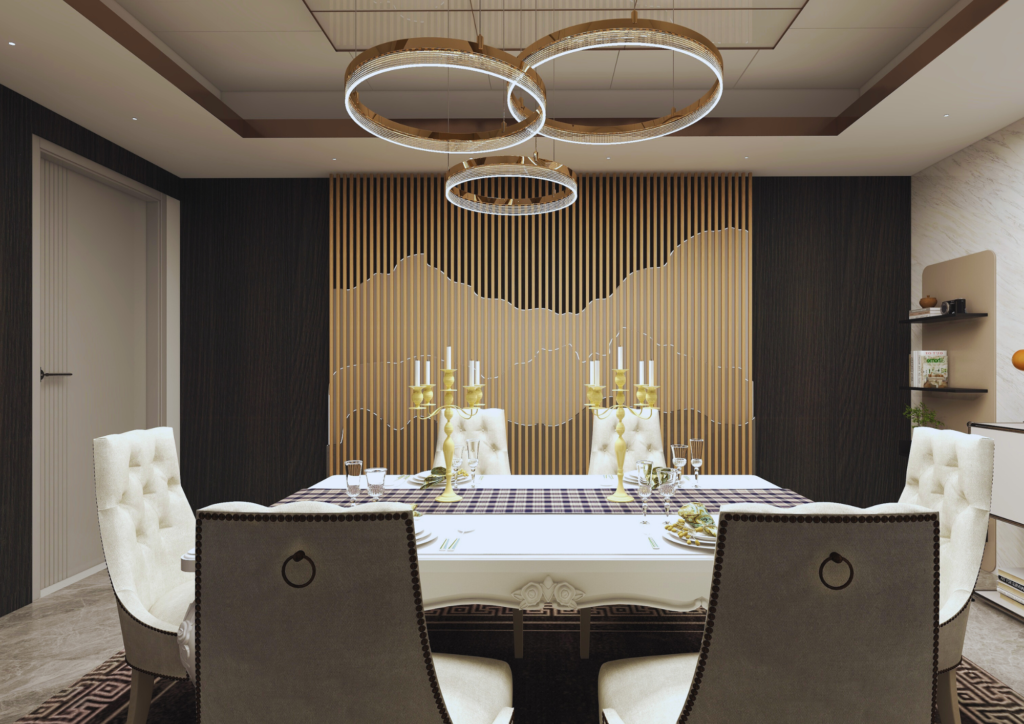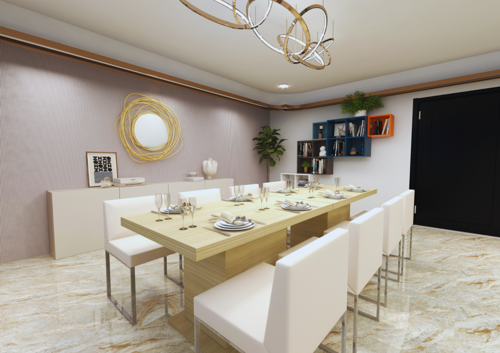 At NK Homes, our dining room designs combine elegance with functionality, creating spaces that are both inviting and refined. We work closely with clients to understand their vision, designing dining rooms that enhance the dining experience while reflecting personal style. Every detail is meticulously planned to ensure a harmonious blend of aesthetics and practicality, making each dining room the perfect setting for both intimate gatherings and grand occasions.